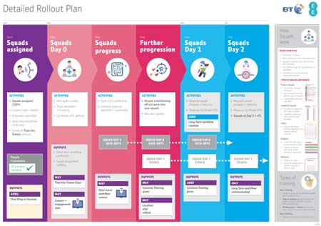By mid-2019, every team in BT and EE Digital had completed the process of moving into Agile Squads. Huge increases in efficiency and output were already recorded, with some squads more than doubling their optimisation output over the first few months. This is only the start of this transformation, however, as the process will constantly iterate, and drive further improvement.