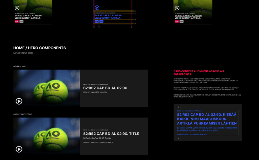 Once the over-arching brand guidelines were agreed, my Design team got to work on the digital execution. We delivered every element of the new brand for responsive web, native apps, and Connected TV. Thousands of layouts and variations of components were explored, to best portray the new brand within the limitations of each format and technology.