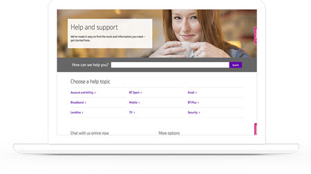 When I first joined BT in 2015, the customer assistance 'Help' site was in a bad state. Cluttered design made information hard to find, and the site was littered with inconsistent UX patterns and journeys.