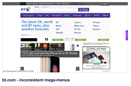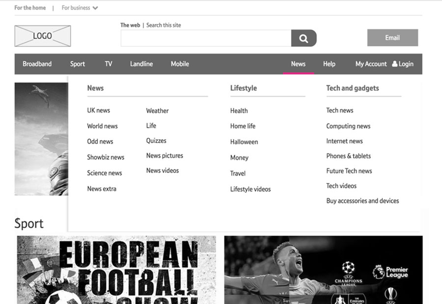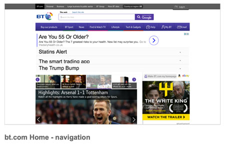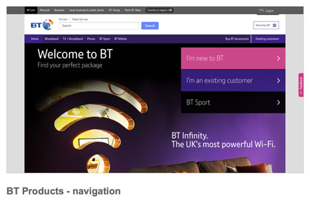 The BT estate is huge, spanning many websites and business units. Previously the navigation across all these sites was confused and inconsistent. We undertook a project in 2016/2017 to improve the navigation across the BT estate, and bring a greater consistency.