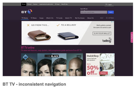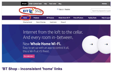 Inconsistent navigation across the BT Estate