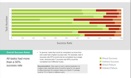 Finally, once we were confident in our approach, we conducted a large round of quantitive research. We used Tree-jack online testing (529 users), which allowed us to test journeys across all levels of the new navigation.