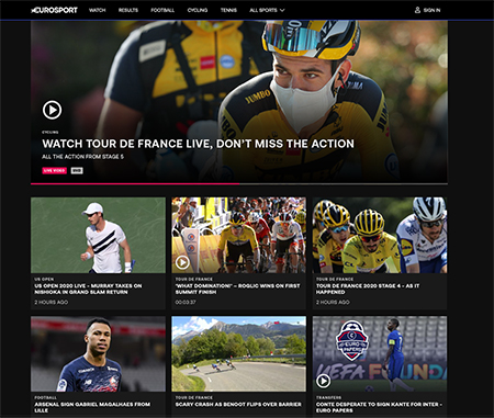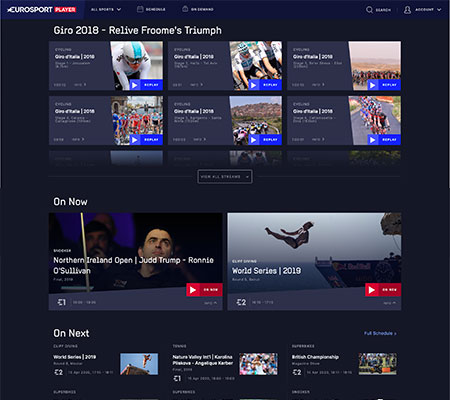 The home page and sport hub pages now contained a rich mixture of latest sports news, and premium video content. The new Watch section contained all the content of the previous 'Eurosport Player' experience, but presented clearly using scrollable rails and contextual links. With improved architecture and navigation, users could now quickly access the information they needed, such as the latest results.