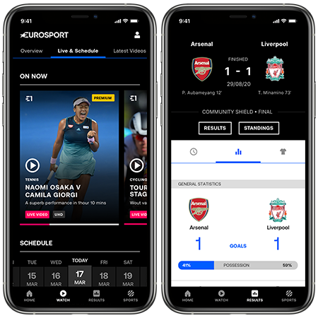Mobile App: The new Eurosport Watch and Results sections